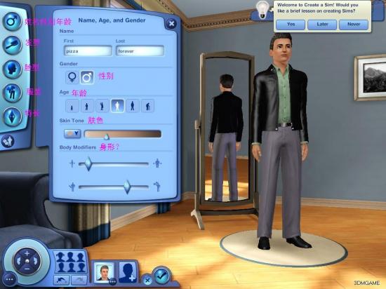 下面是关系到钱的东东,模拟三有3个模式,一个事生活模式一个购买家具日常用品模式另一个是购买房子地皮小轿车等等重量级的东东,这要求我们在赚钱的同时,对家庭的布置,用钱的尺度等等有了要求,培养大家养家糊口的能力 可以我什么都不会啊
