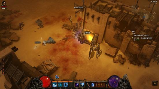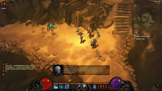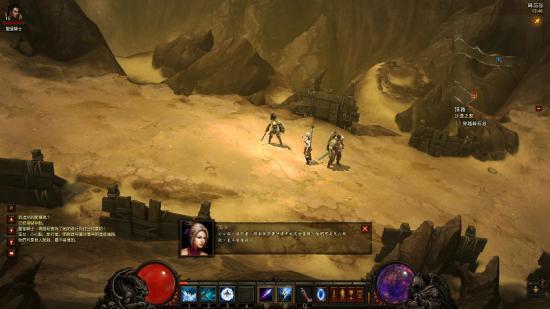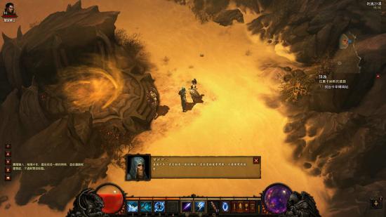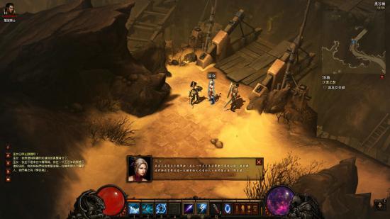 来到南部的刺风沙漠,在地图的中心偏南部可以找到一个据点,同里面的死灵法师对话,开启支线:动荡的沙漠