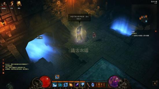 从绿洲北部的入口进入到远古水道。这里你需要前往两侧的水道关闭掉水闸门,才能继续前进