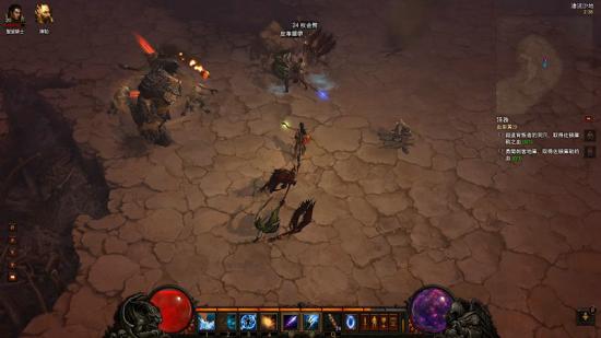 库勒一开始会有两个大守卫和他一起攻击你。这里要首先干掉他的两个守卫,然后你需要绕着圈打他