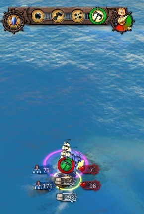 说到海战,不得不补充一下海盗船信息,在航海图上,有下方海盗旗帜的地方,表明该处最近一次通过的船是艘海盗船(不信你可以控制自己船去通过一下,就会变成你的旗帜图案了),然后扬着黑色船帆的舰队便是海盗舰队,右键点击它,追上之后便能选择战斗。