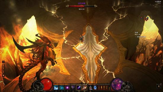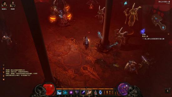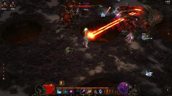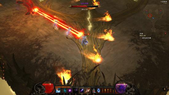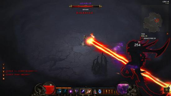此时暗黑破坏神主要有三种攻击方式。第一种是释放区域性的火球,比较难躲,基本是全区域