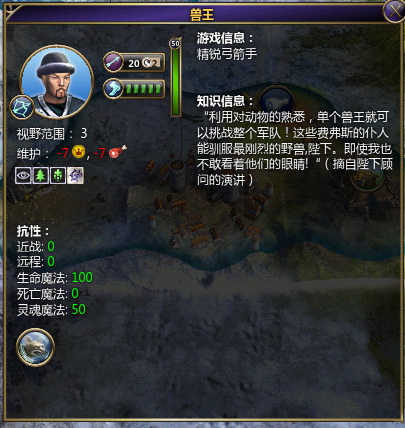 野兽:在森林中防御获得加成,攻击森林中的目标获得加成 |