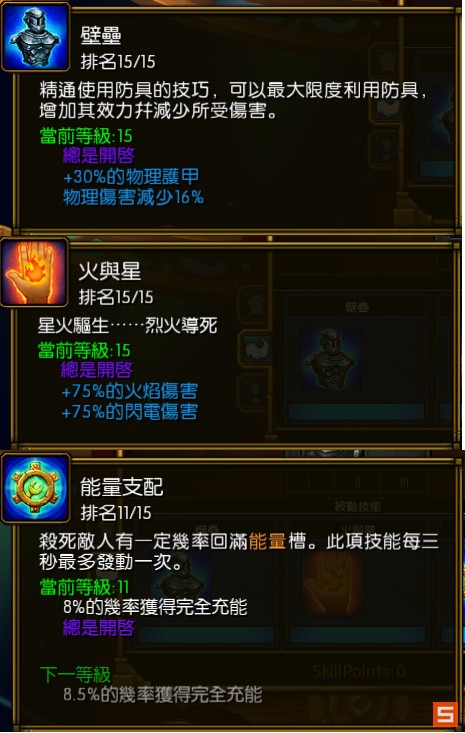 第二页回血机器人满,被动物理防满,火与星满,能量支配11