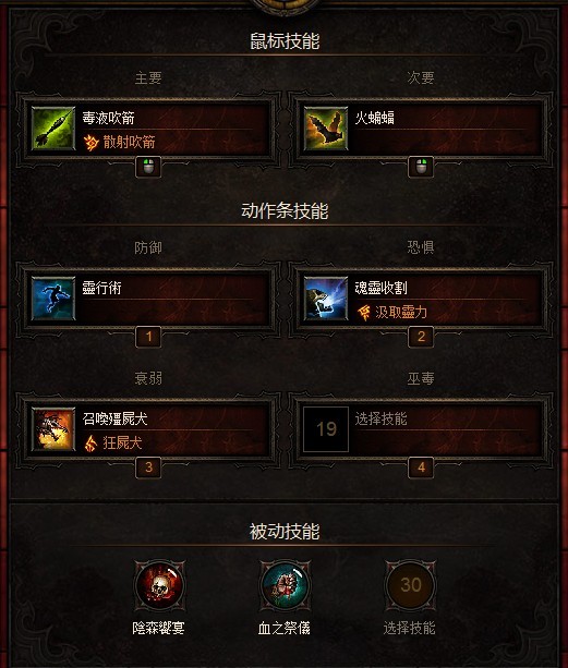 2.小怪战,左键换成火骷髅,因为没到40级出回蓝,现在的蓝酸雨不可能放太多,所以火骷髅来补充一部分AOE输出,特别是28级出了闪焰颅骨符文之后,真的很好用