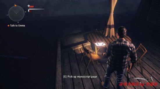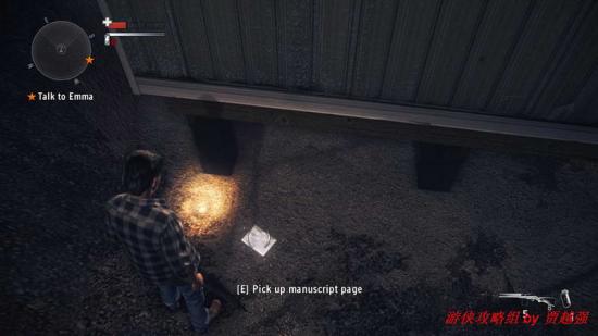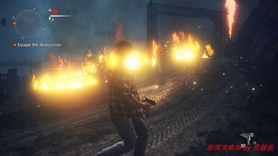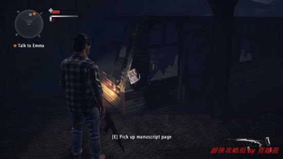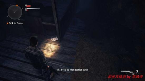1.开场主角回到了游戏最起初的地方.不同的是此地已形同废墟.似乎主角所经历的事正在一遍遍的循环,你身后的轮胎附近有一份手稿.这里我忘记先截图就直接拿了.周围的地上还有把红色的信号枪.向前探索,捡起弹药及手雷.往前会是最开始捡到9mm手枪的地方.与开始不同的是这次遇到的敌人是由乌鸦群变化的.收到光照会分身成鸦群躲避.等他再成进入人形继续射击.之后不远处的油桶那有一份手稿.