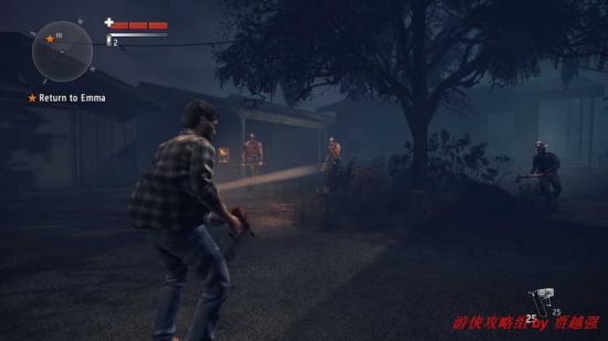 2.下山的途中会再遇到一次乌鸦群.解决后山脚下的房子附近有一份手稿.开始的那处房车那的电视可以播放新的录像.那货越来越疯了.一旁烧毁的车子上有一份手稿.餐厅的桌子上有一处手稿.之后去车库.遇到本该已死的黑背心妹子.并向主角重复之前说过的话.一切陷入循环.任务又变成了寻找物品.前往心号标注的地点.进入原本被封住的矿洞.捡起蓄电池.之后小心蹿出的蜘蛛.赶回车库,触发剧情.折回再次上山.会遇到两波鸦群.纠正下是很多波.