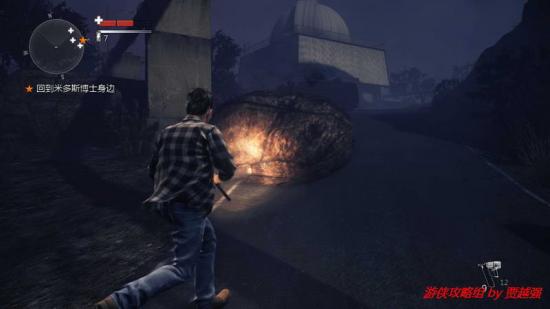 3.上山的路上会有滚石掉下来,注意闪避.黑暗力量了阻挠你会一直卷起重物袭击你.一直....所以快点跑到天文台那.就快到时一块巨大墙体会堵住道路附近的岩石上有一处手稿,然后走向有路灯的那条小道,那三盏路灯不会给你回血,你一靠近就会灭掉.上去后会遇到两批敌人,优先解决扔手雷的.之后进天文台.天文望远镜已正常运作,我说过这游戏的音乐很棒吗.继续.进到妹子所在的室内,触发剧情,取出报告.本章结束.