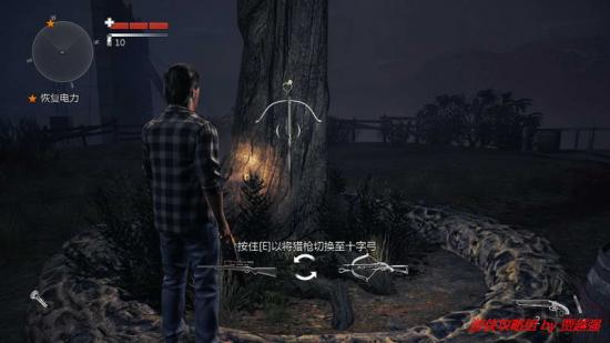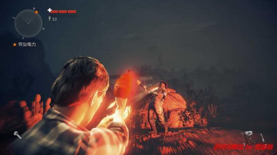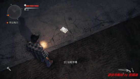 2.来到露天停车时触发场景遭遇敌人,刚刚解锁的枪威力可观.保安室内的电视有新的录像.总之主角必须从这个世界脱逃.荧幕下有份手稿.荧幕的右侧有个景观台,那有一份手稿.附近的树上挂着一把猎弩,之后前往发电厂,靠近时会遇到大批敌人,正好给武器试手.打开电厂的门.在发动机电闸的附近的木头上有一份手稿.按灯闪烁的规律启动电力,之后会有蜘蛛出现.出电厂时要注意闪避高压放电