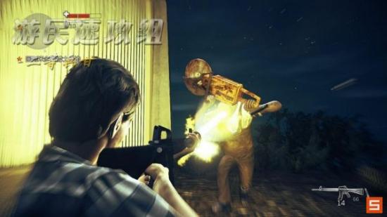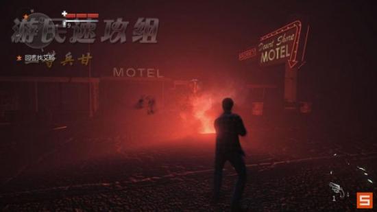 在汽车旅馆前又遭遇一只电锯男和杂兵若干,使用闪光弹+信号火炬+卡宾枪,将他们全部送回老家