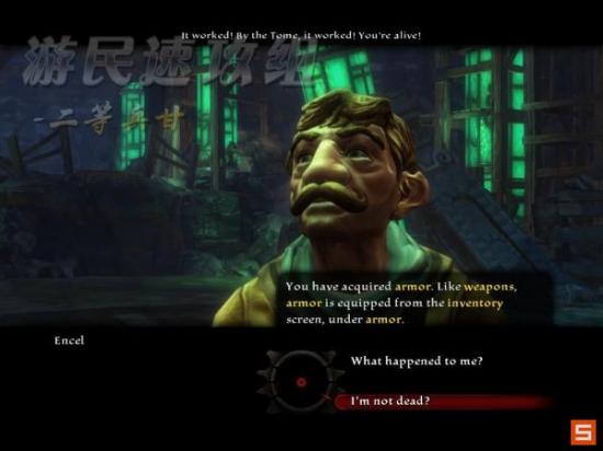 路上还会遭遇三只大蜘蛛的围攻,把矮人大叔送到他的同伴处完成任务,可以拿去大厅周围三个木箱里的武器装备,下面我们要去找矮人博士谈谈