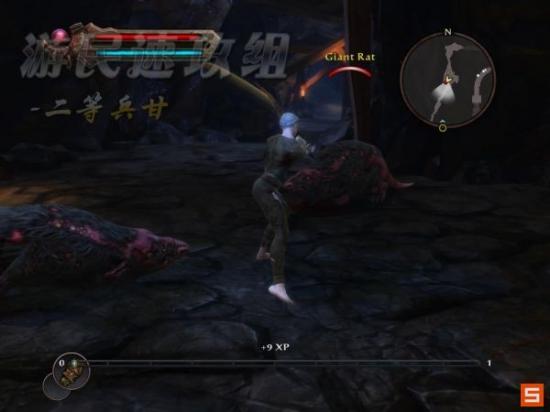 一路前进路上会遇到两只正在吃尸体的大老鼠,使用巨剑轻松把它们送回老家