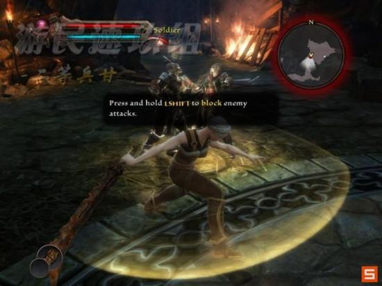 在这里我们得到了魔法能力,点击鼠标右键即可发动魔法攻击,魔法攻击与物理攻击相互配合可以有效杀伤敌人