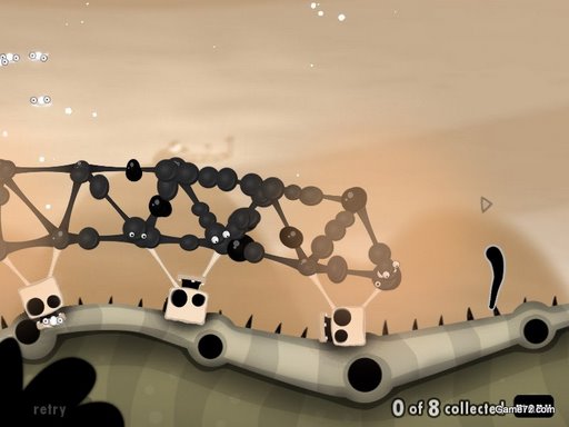用粘豆包建造建筑结构粘粘世界是一款由2D Boy开发的益智类游戏。在游戏中,玩家要使用一种叫粘豆包的粘性小球来搭建庞大复杂的结构。游戏的单机部分分5个章节,每个章节都有自己的主题画面风格和主体音乐。此外,游戏还有“全球我最强”(World of Goo Corporation)模式,玩家可以在这里用有限的粘豆包建造尽量高的建筑并上传,让全球其它玩家来挑战。