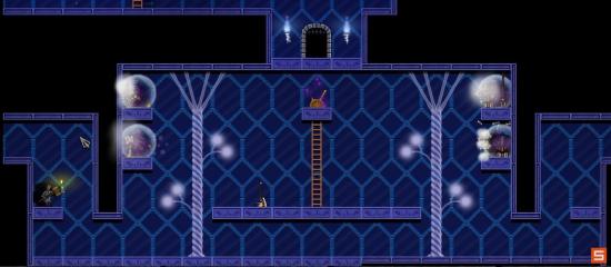 另外在这里可以用群攻锤子来刷经验,在梯子上做上下运动将骷髅们引下来一一消灭。