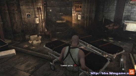 在焚化炉的第一个剧情过后,检查前面的带轮病床