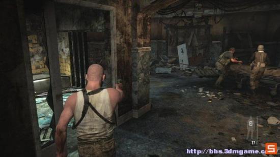 经过电梯的短途运输之后,你将遇到两个佣兵。在前往附近的洗浴间找到这个部件,你可以干掉他们或者不干掉