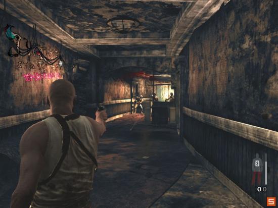 2.之后从楼层的凹陷处跳下,爬上对面打爆尽头的气罐消灭敌人同时炸开房门.周围的房间内有一瓶止痛药.之后来到走道,上楼,进门来到走廊.到尽头的门触发剧情,马叔在档案寻找线索收集档案,并在解救了一部分的俘虏后通过电梯的绳索爬到上层,消灭室外的所有敌人,路过泳池来到餐厅,一路消灭敌人.尽头的钢琴可以弹奏,很悲凉.继续流程.