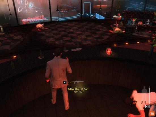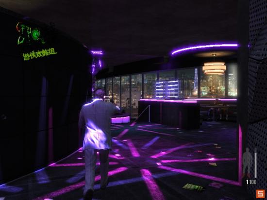1.下舱门,来到夜总会屋顶,搭乘观光电梯,进门的时候纯粹变LSD反应了.幻光迷离,视野模糊.之后的过场可以看出老二与拜金女的私情.这里我很纳闷,距离酒会屠杀才过了一周,这几人怎么就敢明目张胆地暴露自己.他们的仇家也是这么想的,又是那伙劫匪,又一次劫持了这几人.几声枪响,喝糊涂的老马破窗而出,追击敌人,这里要在子弹时间下尽可能的命中舞池中的敌人.落地后利用掩体对付敌人包夹的火力,(舞台上有各金枪模组)靠近门触发剧情,门已上了锁链,之后再解决一批敌人.什么耍酷啊,慢镜头啊,适当用之,之后上蓝色的阶梯。