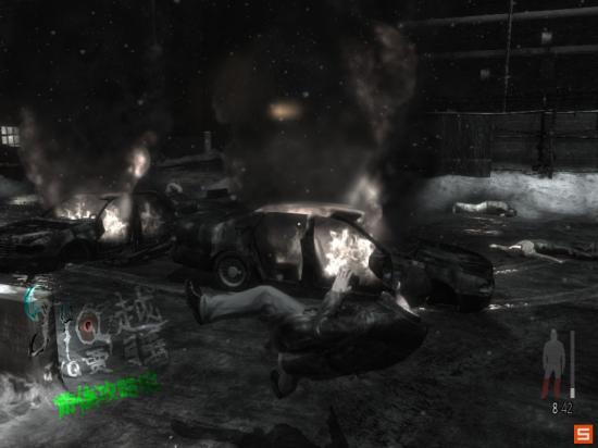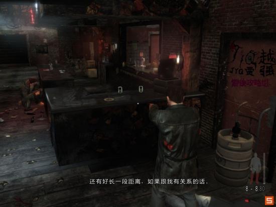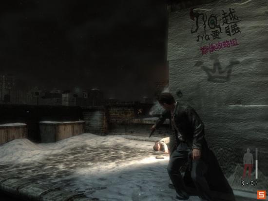 1.开场把收拾残局,误伤老同学会任务失败,别急着下楼,楼上的地板有金枪模组,之后在楼下打死剩下的富二代,桌上有两瓶药,以及赶来的莫名其妙的支援.如果可以就在子弹时间里点下画面中的每个头,下一个房间里我仍旧什么也没看到.出去后马叔谨慎掩蔽,并遇到残留的富二代及喽啰,或者说渣渣,把车打爆就能清扫干净.捡起他们的霰弹枪,可以留着打汽车,之后走进巷子,遭遇赶来的帮手。