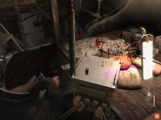 3.出来后经过走廊就会见到瞄准线,飞扑到底,之后上阶梯来到屋顶,这里慎用斜侧的蛙跳,注意掩蔽,消灭三批把守在屋顶的敌人,之后触发剧情,攀附在水箱上的马叔被敌人发现,在子弹时间内击毙所有人即可,之后与老同学会和,继续向前遭遇敌人,这里表示花屏爆头难度逆天,通过阁楼的楼梯,上面的有一伙敌人迅速击毙,发电机上有止疼药