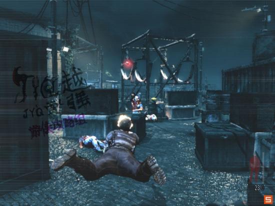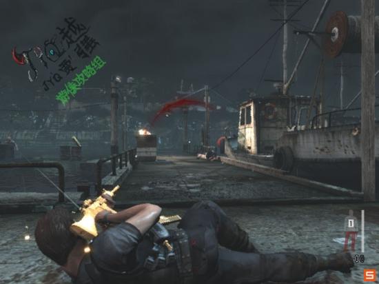 4.上平台来到尽头处跳下去,遇到大量敌人,等待时机射击散落在视野内的气罐,搞定后去大门进入下个场景,调查附近的两处搭棚可以找到不少止疼片,之后启动闸门,触发剧情,发现远处的劫匪与拜金女,走水上的平台,一路上要面对大量敌人,解决第一个敌人后要小心架设机枪的汽艇,随后那打爆对岸敌人那的气罐,最最主要的是别慎用飞扑,这里掉下水就会判定死亡,这里我由于贴图错误显示不出正确的桥面,但在末端有一处金枪模组,折回进入铁门,打爆那艘汽艇,剩余的路我这里无法形容是怎么打下来的,你看截图便能明白,撑到下个门会触发剧情,发生爆炸后毛发男会驾驶汽艇前来支援