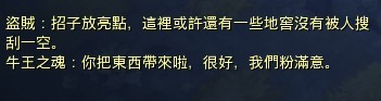 这是网上最容易搜到的信息,这个可谓坑爷爷。一直以为是钻到一个洞里才触发事件,坑爷爷的是这个地图上有一个“被洗劫的地窖”,进去以后是个老头被人打劫,你救下以后,他会打开密室,说把他老爹的传家宝送给你,然后地上两个箱子。。。我刷这个刷了一中午,死活不出。