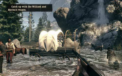 往前跑了没多远 就看到William和Marisa被几个印第安人从马车赶了下来 他们两个分两个方向逃跑 得到任务找到并保护Marisa(如果选择控制Ray那任务就是找到并保护William)