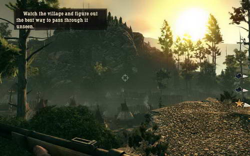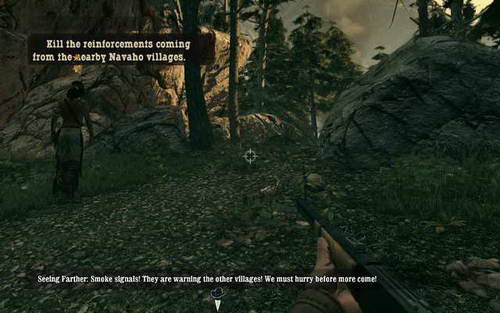 划独木舟前行没多远 Seeing Farther提醒印第安人会使用狼烟来预警 所以要多加注意 刚说完没多久就看到篝火边几个印第安部落的哨兵 得到任务 在哨兵向村庄报警前消灭他们