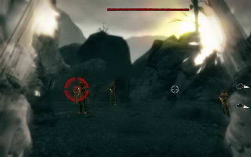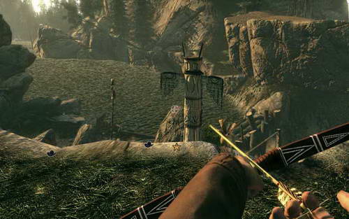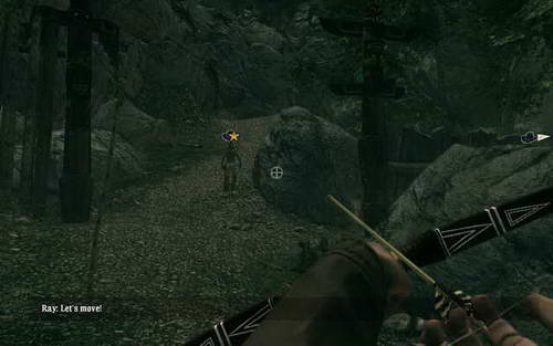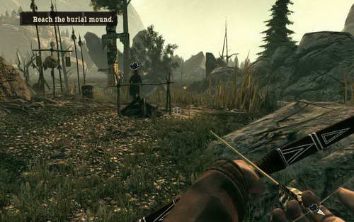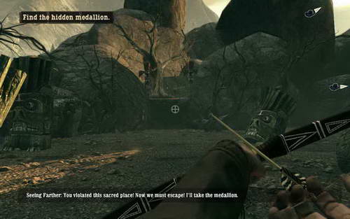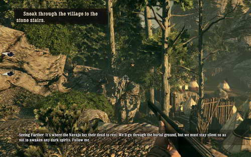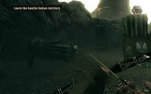 爆炸后追兵终于不再出现 不过前面山上出现不少敌人向你射击 得到任务 沿着两边满是图腾的小路前往印第安的坟场