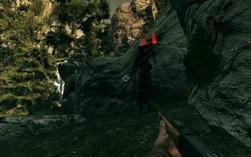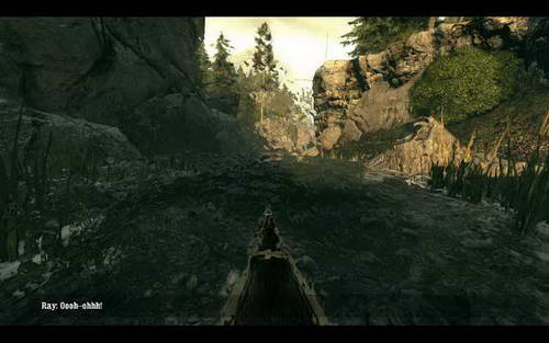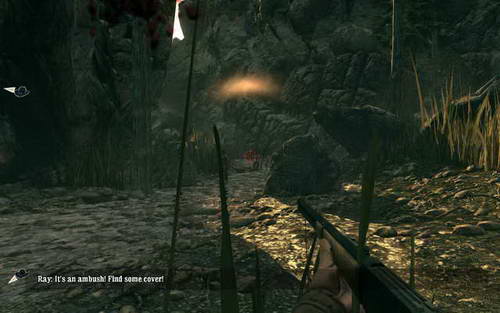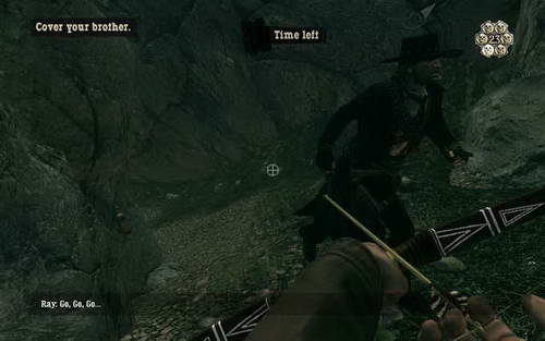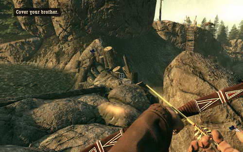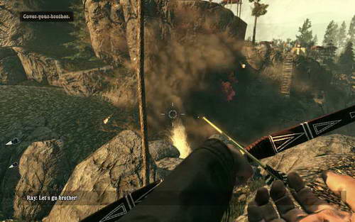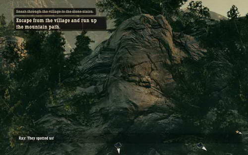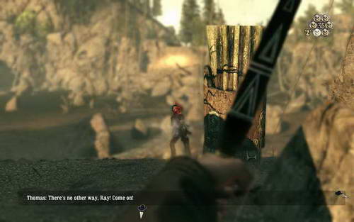 到这里由于后面从村落里追来的敌人太多了 Thomas让Ray炸掉岩石阻拦追兵 得到任务 掩护你的哥哥(这里如果控制的是Ray那任务就是去岩石边按F了)