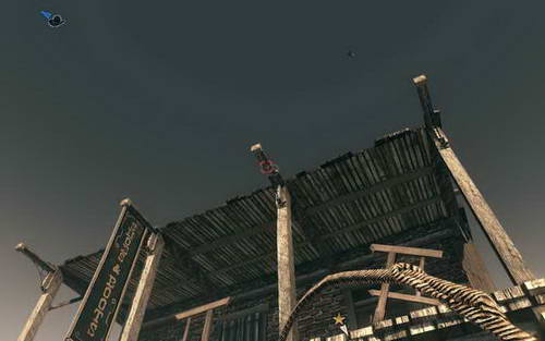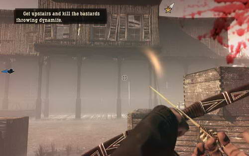 这时从左侧房顶和正面酒馆里出现大量敌人 小心应付 消灭部分敌人后 有人从2楼向下扔炸弹 要小心 得到任务 上楼干掉扔炸弹的混蛋(在酒馆楼顶处)