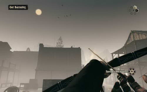 搜索并消灭屋内的敌人 推荐武器还是弓箭 因为有专注的效果 所以在近距离混战中也很厉害 最重要能回收弹药 屋内搜索没有结果 只好出来 消灭外面的几个敌人后 终于见到了Barnsby上校 立刻得到任务 抓住Barnsby