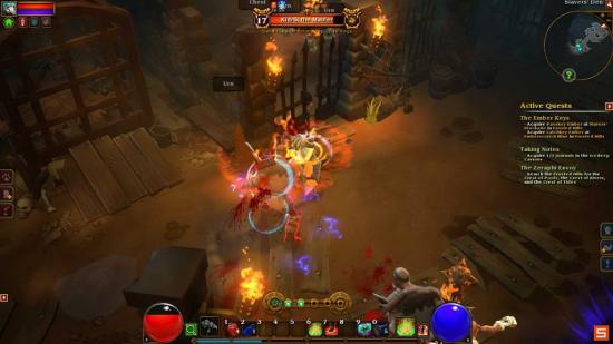 TheEmber Keys任务地图比较大,怪物主要由人形怪与触手怪组成,怪物伤害高且群怪中总有精英怪物,刷怪时注意回避精英怪物伤害。