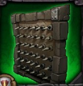 300价格,需要布置在地上,前几个地图很好用,敌人才到上面触发尖刺,尖刺会对陷阱上面所有敌人造成瞬间物理伤害(大概是普通兽人多半管血左右),单个地刺陷阱不会有很大的作用,但是如果是一个贴一个的布置,效果会大大提升,普通兽人被刺2刺必死,升级后有减速,但是还是不如粘性沥青陷阱效果,后期基本放弃。