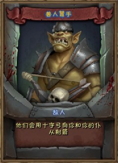 近战物理,速度较快,攻击速度很快,伤害中等,被攻击的目标会有减速效果,十字弩爆头可以对它造成很高伤害,吃各种陷阱和魔法效果,这个兵种出现后,他得第一目标就是杀死主角,单个出现的时候很好对付,但是2个以上就要配合魔法来应付了,最好的物品当属寒冰坠饰,右键靠近冻结之后,大剑上去轮它几下就搞定,注意寒冰坠饰右键使用时候不要靠得太近。