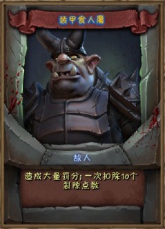 装甲食人魔:重型近战,血量和护甲超厚(相当耐打,普通攻击很难杀掉),速度一般(靠近目标后会加速跑),伤害较高,被攻击的目标会有昏迷效果,十字弩爆头可以对它造成很高伤害,会免疫很多伤害陷阱效果(天赋中可以升级对食人魔起作用),他的攻击有昏迷效果(就是玩家被定身,什么都不能做),一定不要让它打到你,如果被打倒了,就等昏迷结束立刻跑开,这个大家伙,普通物理伤害以及陷阱伤害对它的伤害都会大大减少,很是皮厚,那么寒冰坠饰又要出场了,冻之,砍之,需要注意的是,它满管血的时候,对付他,肯定要补冰冻的,基本2个循环就可以杀掉。