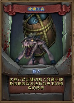 近身爆破,人体炸弹(恐怖分子),速度比地精通讯兵略慢一些,任何攻击它一下都可以引爆它,目标是玩家以及友军(优先玩家),靠近后立刻引爆(你不打它也爆),伤害很高,出现这个兵种,立刻远距离杀掉,如果靠近了,也要及时离开,2-3个地精工兵就可以炸死玩家,另外这个兵种的爆炸效果会对兽人起作用,也可以用旋风腰带,聚怪,然后把它当炸弹点掉,群杀敌人(如果你操作的过来),总之正常情况下,优先击杀掉。