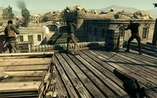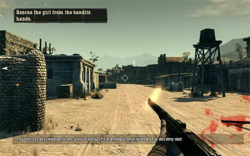 刚冲出酒馆大门 干掉门口的几个敌人 就看到美女让人给捉走了 得到任务 从这帮土匪手中把美女救回来吧