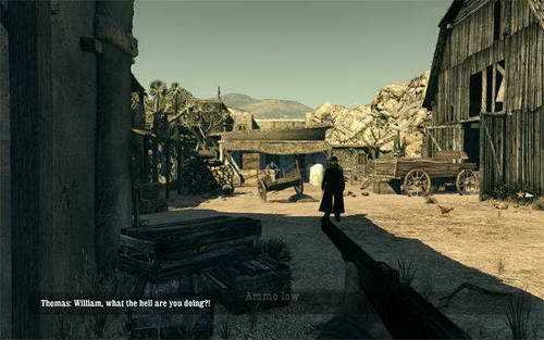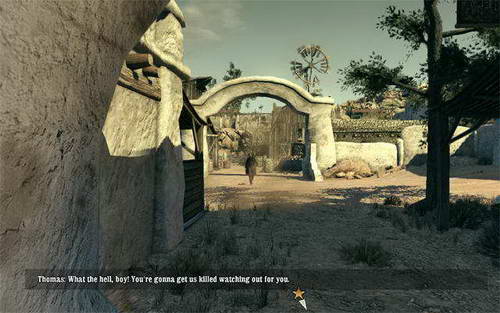 全部干掉后 听到酒馆门外美女被人抓住了 Thomas的急躁表现在了言语之上 而Ray当然也比较急 Ray为了安全让三弟William留在酒馆内 这里又要展开合作攻击了 站到门边吧