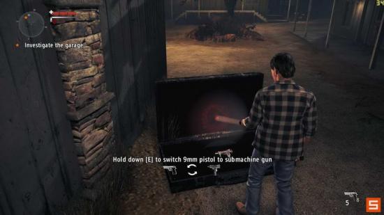 拿到第一把小手枪,可以练练手。没有准星?手电筒就是光线瞄准器!
