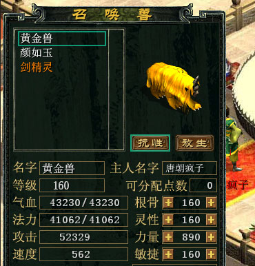 黄金兽,是群侠里最有价值的宝宝。而法宝宝的代表水灵仙,是让你玩心跳的。其实我是比较喜欢玩心跳的,特别喜欢水灵仙,罗刹,颜如玉。但是杀妖生命有安全滴,我都是4头黄金,修罗悠闲的时候就换上罗刹水灵颜如玉爽爽~想打快点的话还是黄金兽