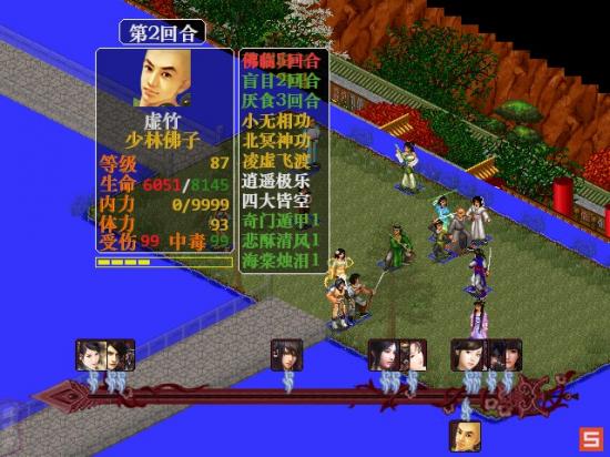 话说古墓的动的就是快啊,杨过竟然第一个动,好吧,上来先挨一个黯然销魂掌,独孤会开万剑,然后主角朝右下走,开星旋,阿青朝下走,开飞仙