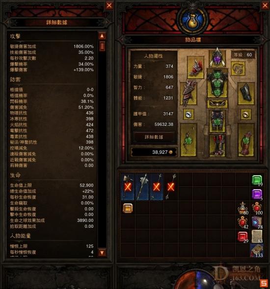 贴两张自己的属性图跟技能图,我的属性也还很多地方要改进,慢慢来吧,比如爆伤低了之类的。D3这个游戏就是很难有毕业的时候,总在不停的追求更上一层楼。