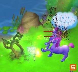 最需要特别提防的就是跑速快的独角兽了,有粉红和紫色两种,基本上只是颜色不同,不过打起来都一样棘手。这类独角兽是欢乐谷裡面攻击力最高的怪物,而且不像花或是熊,牠们不会因为同伴倒下而逃命,会一直追杀玩家直到玩家死亡。