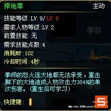 拳法可以释放3个技能【平天落焰】【苍炎冲击】【怒火天袭】(苍炎是5级的 应该没有多少人还会有技能点再往上加了吧 )