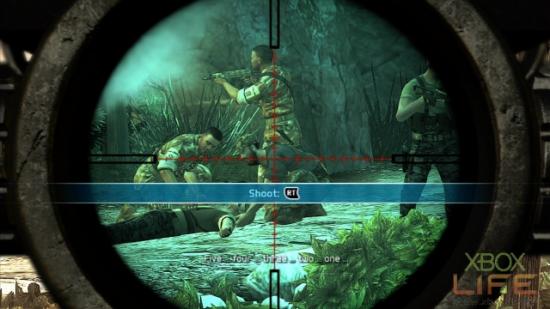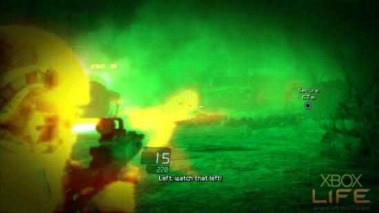 前魅影小队成员垂降之后,建议按下十字键的↓开啓多功能视镜,让自己能够看得清楚藏身于浓雾之中的敌人。