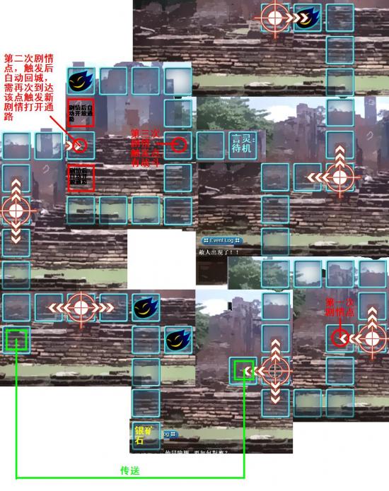 第二次剧情触发点(6,4),触发后自动回城,再次返回该点触发剧情,打开前往第三次剧情点的通路