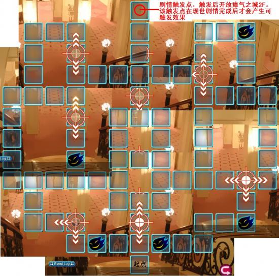 剧情触发点(2,7),触发后开放瘴气之城2F。