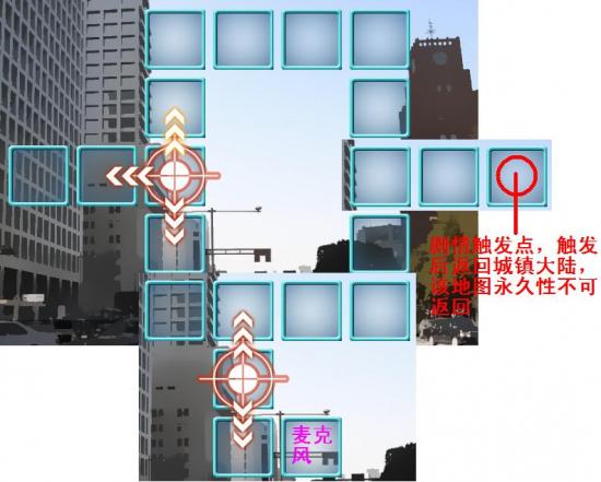 剧情触发点(5,8),触发后返回城镇大陆,该地图永久性不可返回